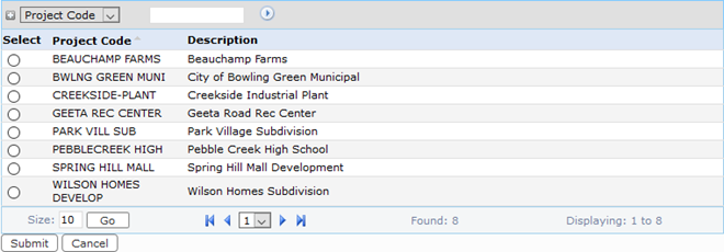 1. If you want the case tied to a specific project, begin typing in the Project Code field to generate a filtered list of projects, or click the Lookup Project Code icon to open a selection window.