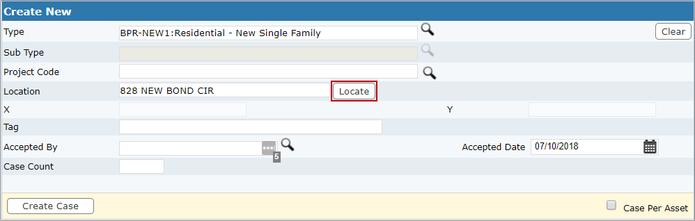 When you enter an address and select Locate, the case is geocoded to the X and Y coordinates on the map. Geocoding gives you the opportunity to pinpoint a specific address or parcel making it easier to visually compare, map, calculate, and analyze data.