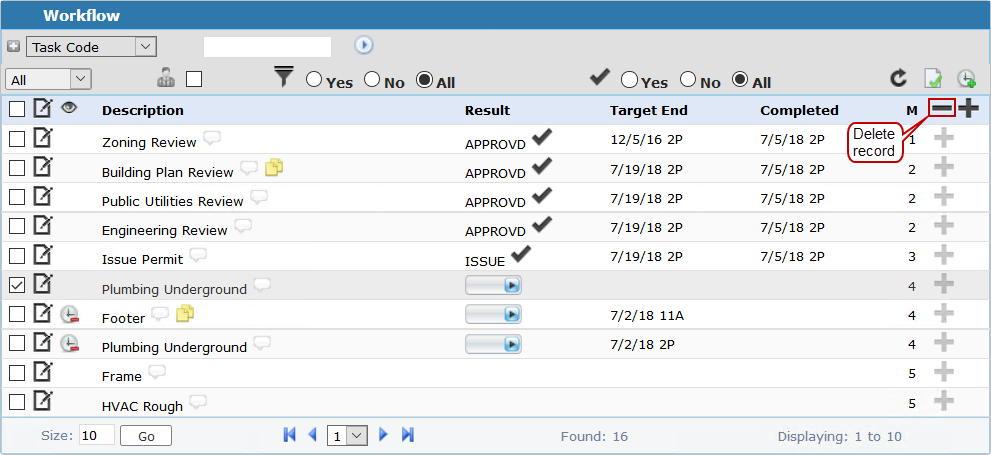 IMPORTANT: A task that has been completed cannot be removed.